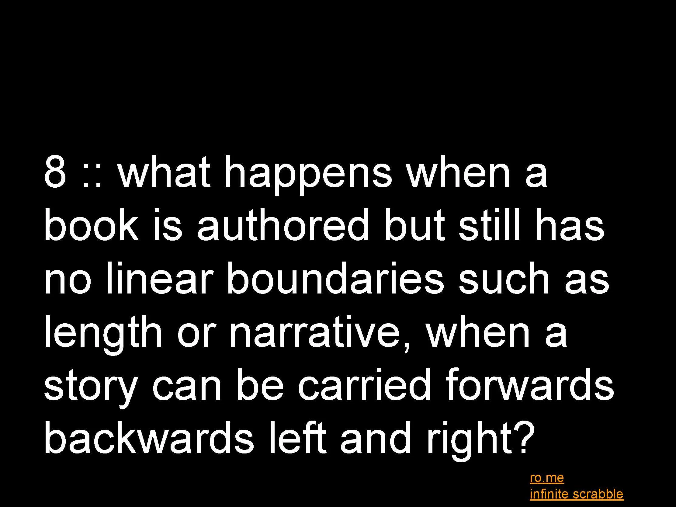 What happens when a book is authored but still has no linear boundaries such as length or narrative, when a story can be carried forwards backwards left and right?